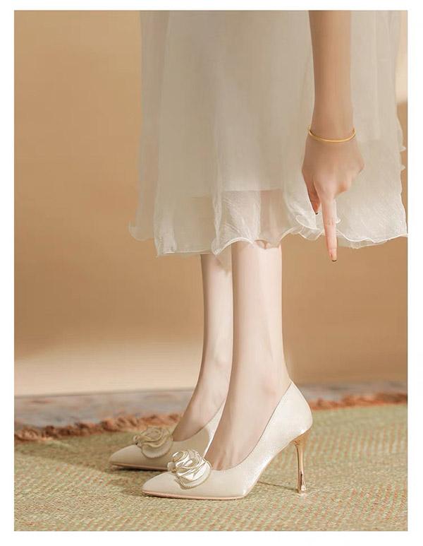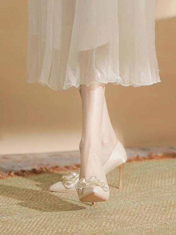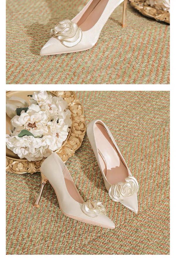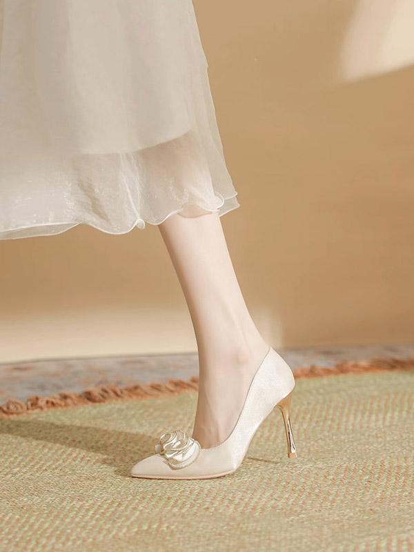 豪華なパンプス レディースシューズ ウエディングシューズ 美脚 背伸び ハイヒール おしゃれ 女性用 フォーマル ポインテッドトゥ ベージュ 結婚式 二次会 発表会 演奏会 演出 イベント