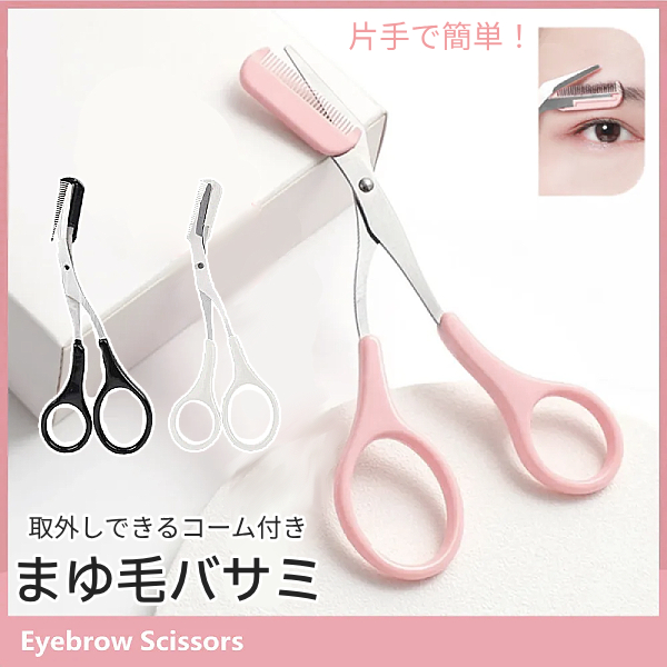 2in1 コーム付き 眉バサミ 眉毛 カット アイブロウ はさみ トリマー 簡単 片手 シンプル くし付き 水洗い可 お手入れ メイクアップ 便利 衛生的 洗える ステンレス