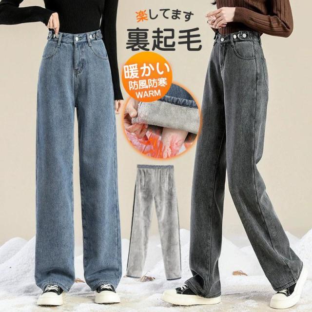 デニムパンツ ワイドパンツ ガウチョパンツ レディース 防寒パンツ 裏起毛 あったか 秋冬 体型カバー ゆったり ズボン 裏ボア ストレート