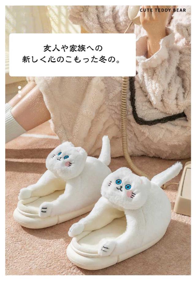 レディース 厚手 保暖 室内スリッパ 裏起毛 ふわふわ あったか レディース もこもこ 猫 かわいい ルームシューズ ネコ 滑り止め ルームシューズ 防寒 室内履き おしゃれ 玄関 台所用 秋冬 柔らかい