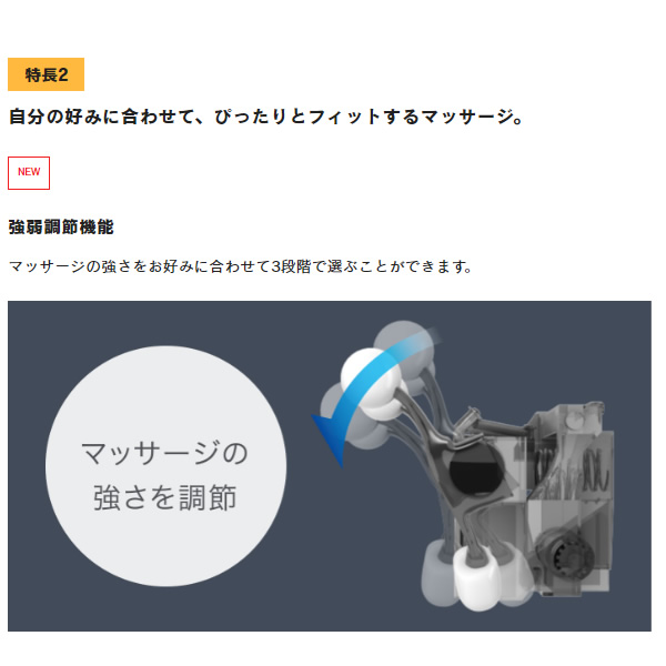 マッサージの強さをお好みに合わせて3段階で選ぶことができます。