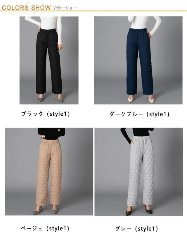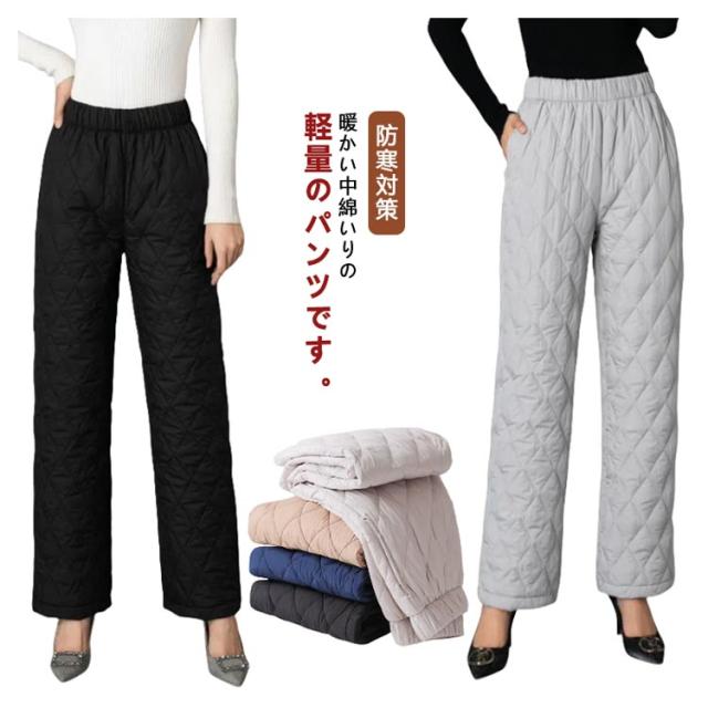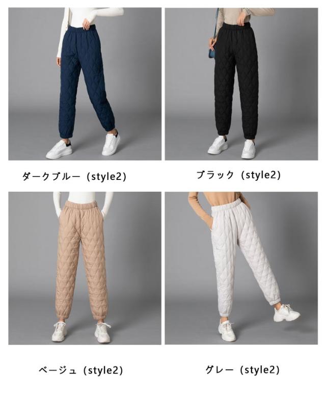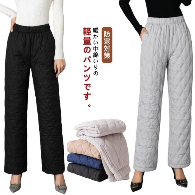 中綿パンツ ロング丈 ダウン風パンツ 中綿パンツ 無地 暖かい ボトムス イージーパンツ 防寒対策 キルティングパンツ 軽量パンツ 中綿 秋冬 長ズボン 防風 パンツ 厚手 防寒パンツ レディース ブラック グレー ダークブルー ベージュ 通勤
