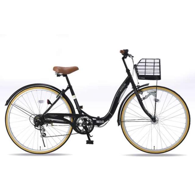 北海道・四国・九州・沖縄・離島配送不可 代引不可 折畳シティサイクル26インチ マットブラック LEDオートライト 6段ギア SHIMANO6段変速付 折りたたみ自転車 MYPALLAS MC509-BK