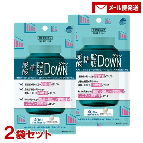 尿酸・糖・脂肪DOWN 40粒入×2袋 機能性表示食品 尿酸値の低下 血糖値 内臓脂肪 日本製サプリ ユニマットリケン(UNIMAT RIKEN)【メール便送料込】