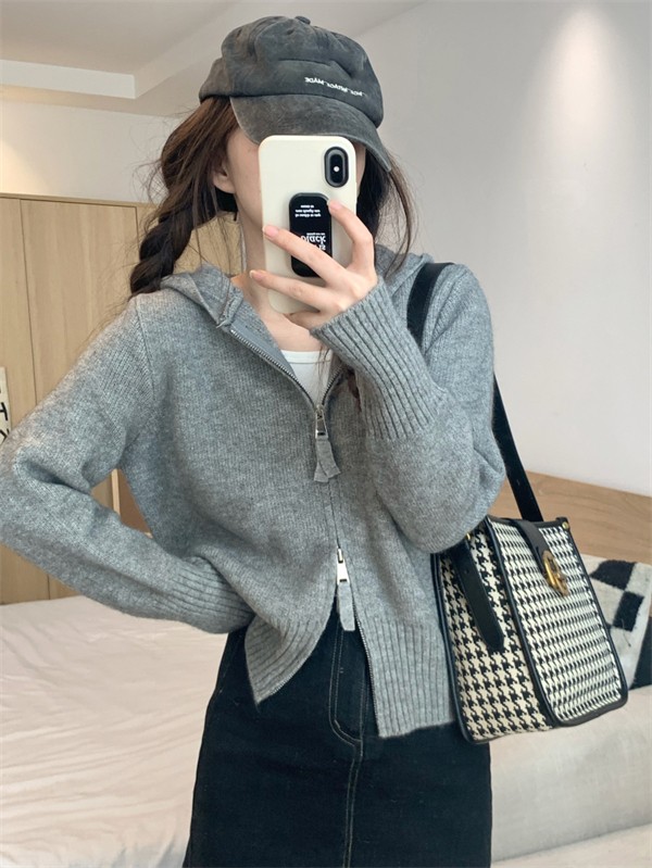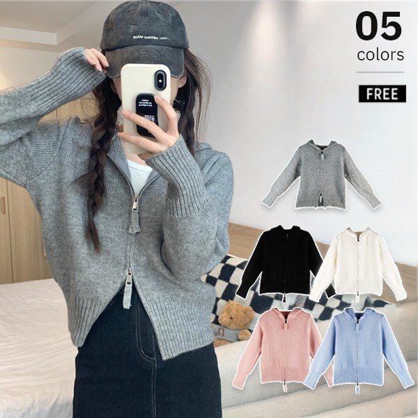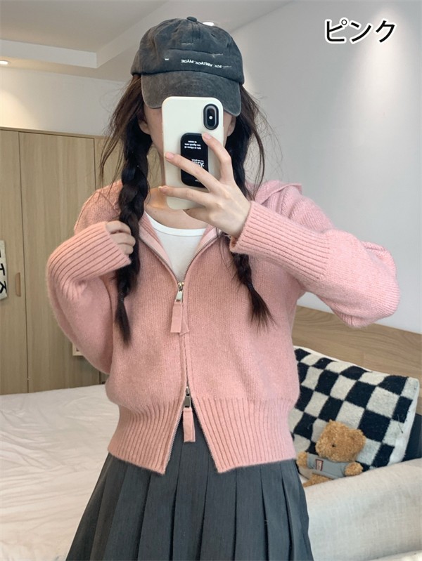 ニットカーディガン レディース ショート丈 カーディガン ショート リブ 春秋冬 ジップアップ コーディガン トップス フード付き ゆったり トップス きれいめ 無地 羽織り お洒落 可愛い 通勤 通学 アウター ホワイト ブラック ピンク グレー ブルー