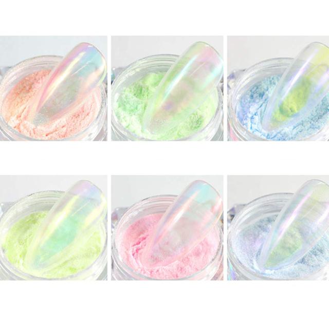 6色セット 透明性 オーロラ ネオンパウダー クリア ミラーパウダー ネイルパーツ ミラーネイル ジェルネイル 0.3g入り