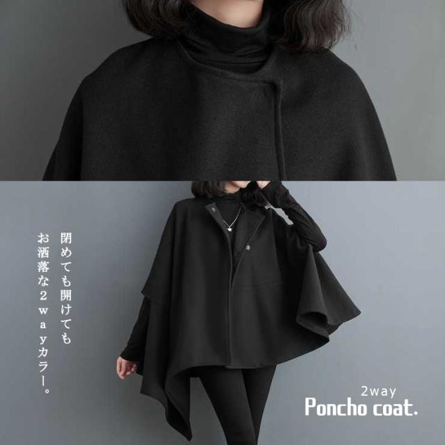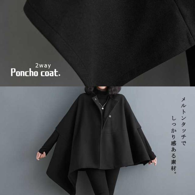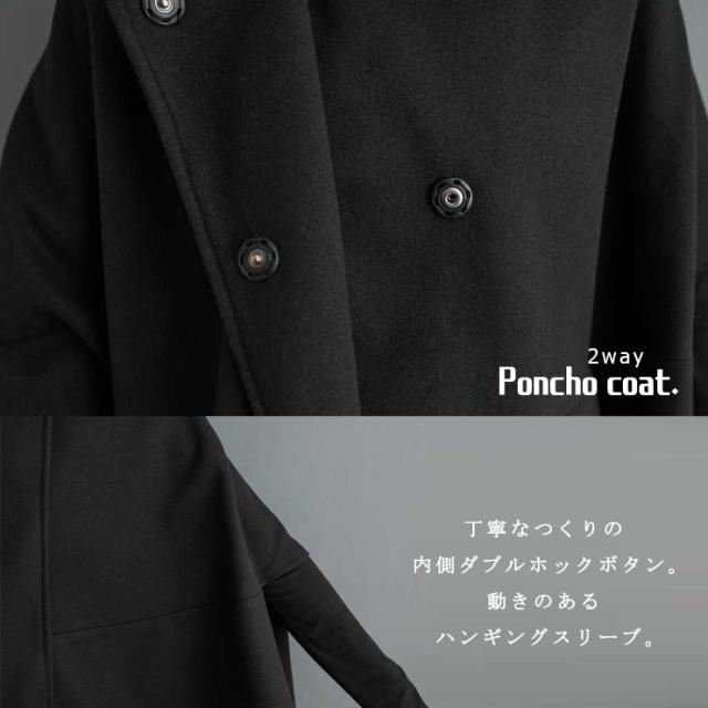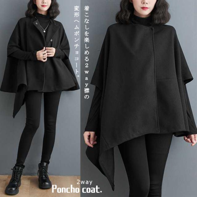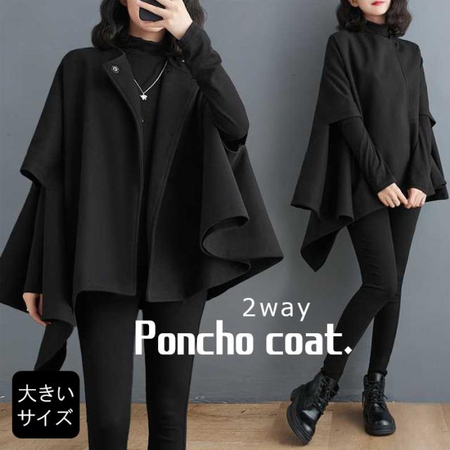大きいサイズ レディース ポンチョコート 体型カバー ハンギングスリーブ アウター 冬 (6011957)