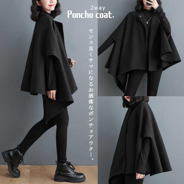 ★☆大きいサイズ レディース ポンチョコート 体型カバー ハンギングスリーブ アウター 冬 LL 3L 4L 5L 6L ブラック☆★