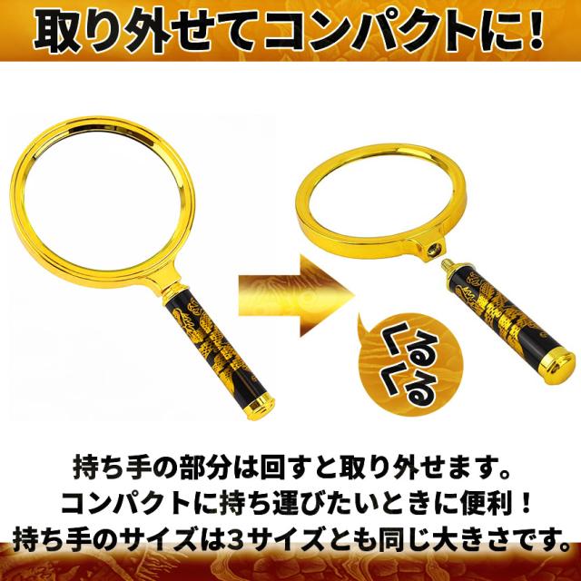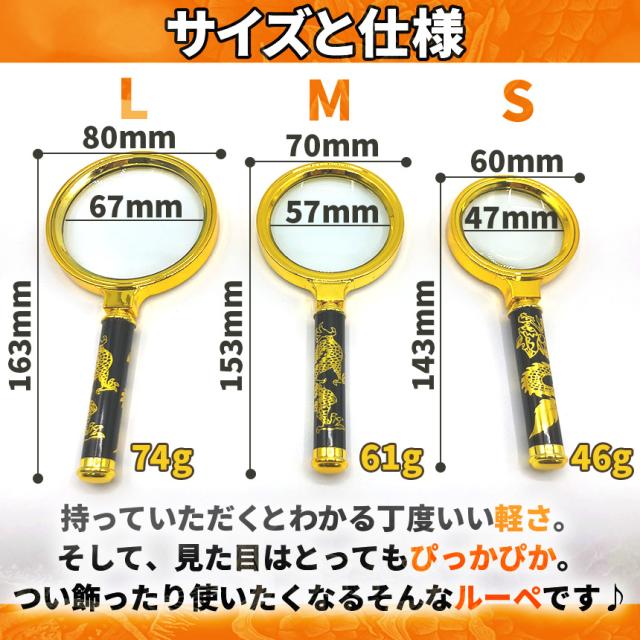 【金色ピカピカの龍の8倍ルーペ!】黒と金の装飾品のような珍しいデザインですけど、ちゃんと8倍の拡大鏡です!虫眼鏡として昆虫観察や自然でのご使用、読書や新聞、文字を読むなどのルーペとしてとっても便利!