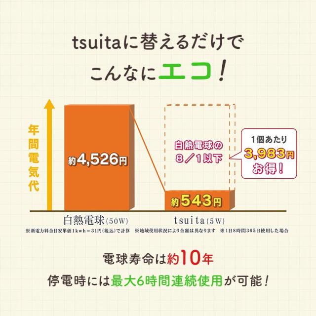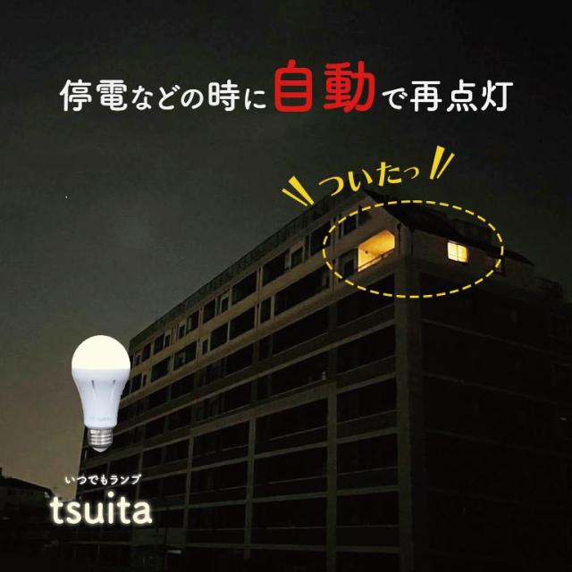停電でも消えない電球 いつでもランプ tsuita ツイタ 4個セット テレビ通販 大人気 防災 停電 地震 台風 自動で再点灯 照明 照明器具 ライト ランプ 電球 明かり 懐中電灯 省エネ LED 電球色 昼白色 バッテリー搭載 自動充電 リビング キッチン E26 スイッチ付きフック 230952