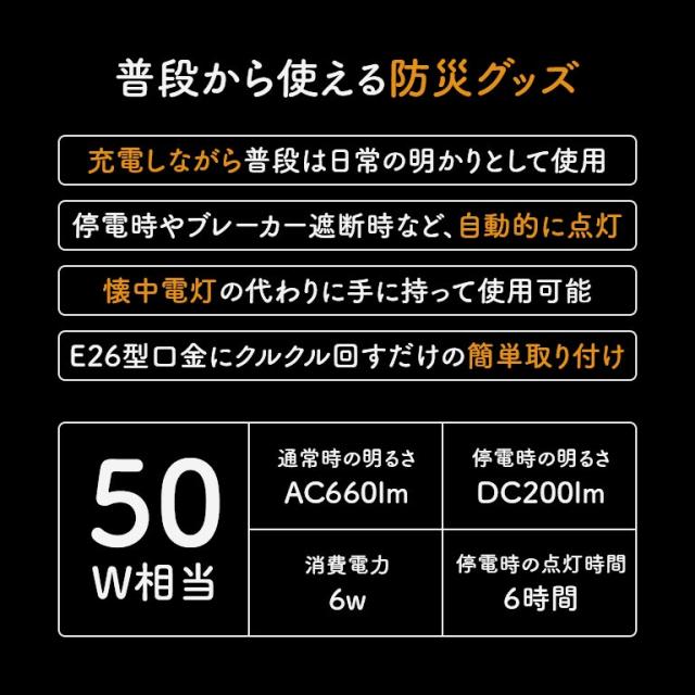 ●明るさ/通常時:AC660lm、停電時:DC200lm
