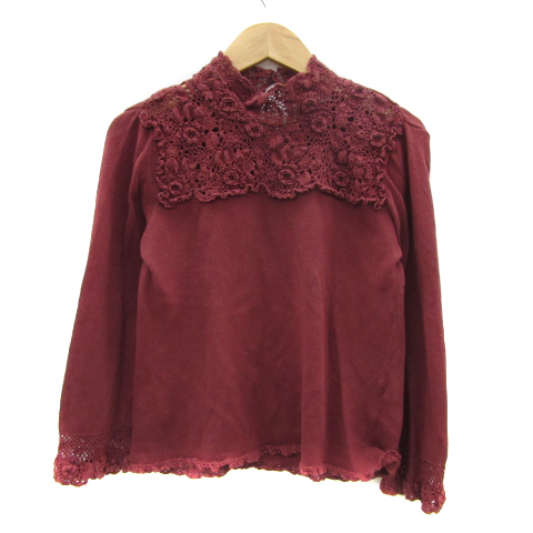 【中古】レストローズ L'EST ROSE ニット カットソー 九分袖 ハイネック レース M ボルドー /YS28 レディース