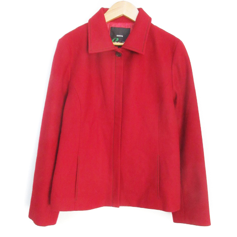【中古】エンスウィート レナウン ステンカラージャケット ミドル丈 ウール 総裏地 ジップアップ 3 レッド レディース