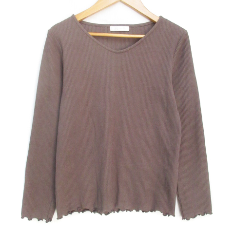 【中古】エージーバイアクアガール リブニット カットソー 長袖 Vネック 無地 M 茶 ブラウン /FF32 レディース