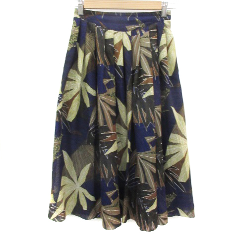 【中古】コルディア CORDIER フレアスカート ロング丈 ボタニカル柄 マルチカラー ネイビー 紺 /YM14 ■MO レディース