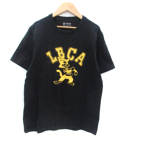 【中古】ナノユニバース Tシャツ カットソー クルーネック 半袖 プリント M 黒 ブラック 黄色 イエロー /HO10 メンズ