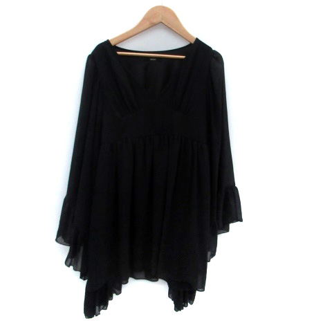 【中古】デュラス DURAS チュニック Vネック 長袖 フレアスリーブ F 黒 ブラック /HO21 レディース