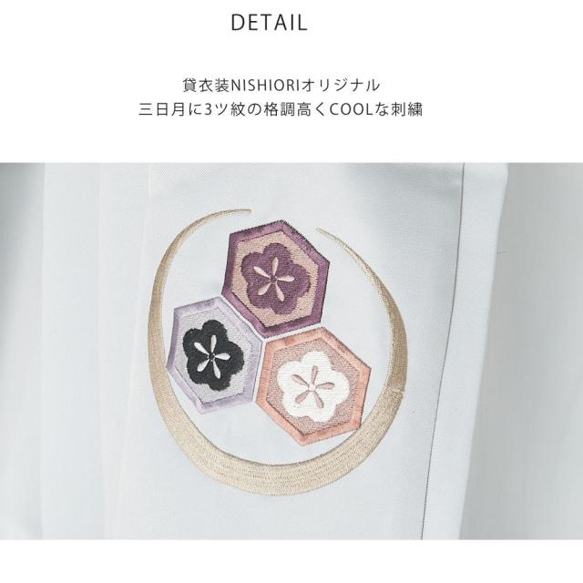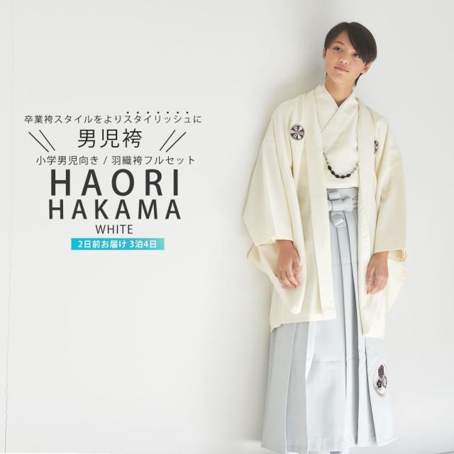 春 小学校 男児 男子 卒業袴 羽織 紋付 着物【レンタル 貸衣装 】 ジュニア アンサンブル 10点フルセット グレイ 白 ホワイト 【9歳 10歳 11歳 12歳 13歳 子供 男児 着物 】正月【往復送料無料】 新品足袋プレゼント 150cm〜160cm適応 ブランド