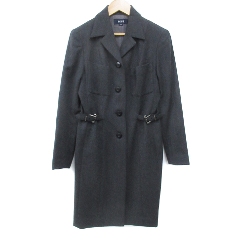 【中古】ロペ ROPE コート ロング丈 オープンカラー シングルボタン ウール ベルト 9 杢グレー /FF3 レディース