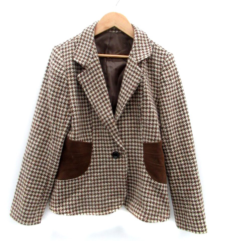 【中古】ザ サード テーラードジャケット シングル 総裏地 ミドル丈 千鳥格子柄 ウール 40 ベージュ 茶色 レディース