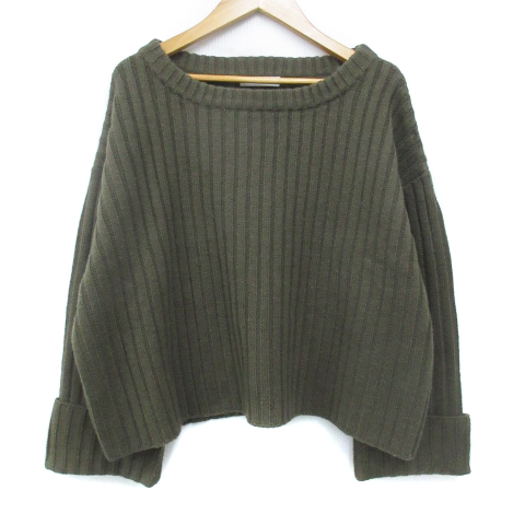 【中古】ジーナシス リブニット セーター ショート丈 長袖 ラウンドネック 無地 ウール混 F カーキ /FF12 レディース