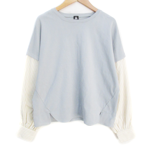 【中古】メルロー カットソー シャツ 長袖 クルーネック 切替 ストライプ柄 マルチカラー F 水色 白 レディース