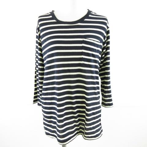 【中古】メローピープル Mellow People カットソー 長袖 ボーダー 紺 白 M *A582 レディース