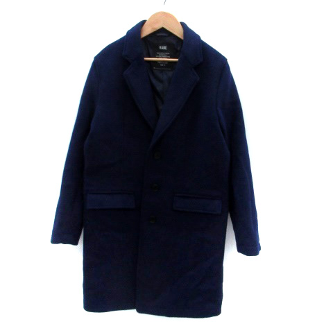 【中古】ハレ HARE チェスターコート ロング丈 シングルボタン ウール S 青 ブルー /HO6 メンズ