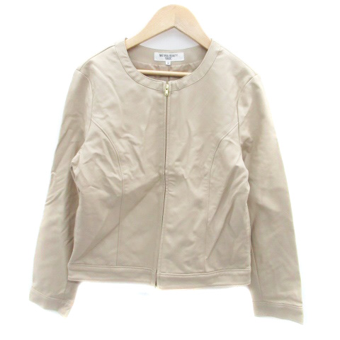 【中古】ナチュラルビューティーベーシック フェイクレザージャケット ノーカラー ミドル丈 M ベージュ レディース