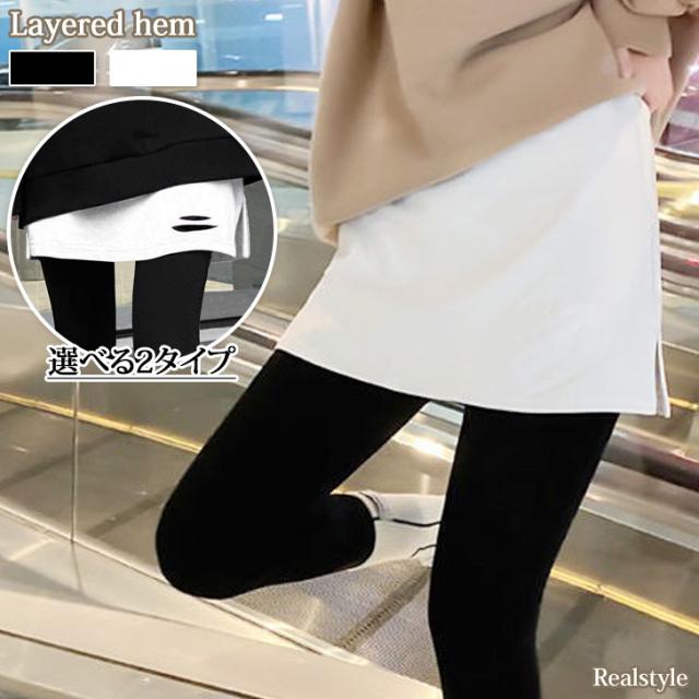 新作 付け裾 つけ裾 レイヤード シャツ レディース ウエストゴム 重ね着風 体系カバー 裾出し すそ フェイク おしゃれ 白 ダメージ 微起毛