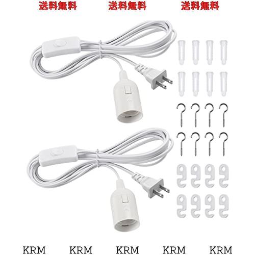 DiCUNO コード付きソケット E26 電球ソケット コンセント 吊り下げスイッチ付き 4m ホワイト オシャレ 2個セット