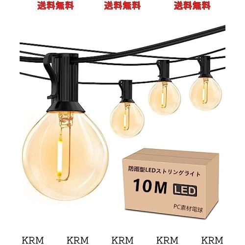 防雨型LEDストリングライト 10M 15個LED電球付き E12口金 2700K電球色 PC素材 破損しにくい 連結可能 LEDイルミネーションライト屋内/屋