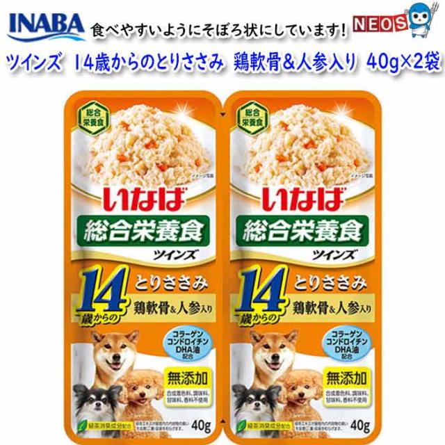 いなばペットフード ツインズ 14歳からのとりささみ 鶏軟骨&人参入り 80g(40gx2袋) TW-06