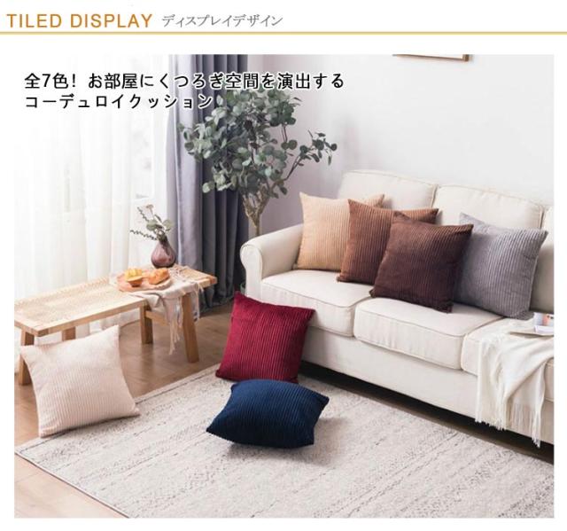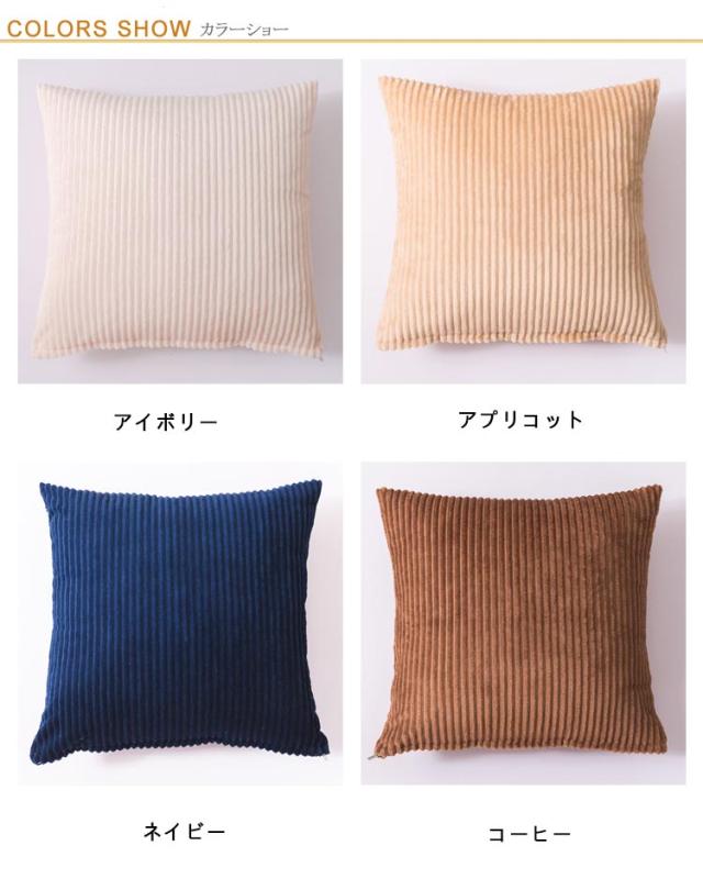 | 全7色!お部屋にくつろぎ空間を演出するコーデュロイクッション もこもこ暖かいコーデュロイ素材を採用する。 ほどよいボリュームがリピングや寝室などのくつろぎ空間に最適です。 ソファに寝転んだときの枕代わりや、ちょっとした肘掛けの代わりにもどうぞ。 インテリアを馴染みやすい全7色展開! カバーは取り外し可能なので、いつも清潔にお使い頂けます。 | |