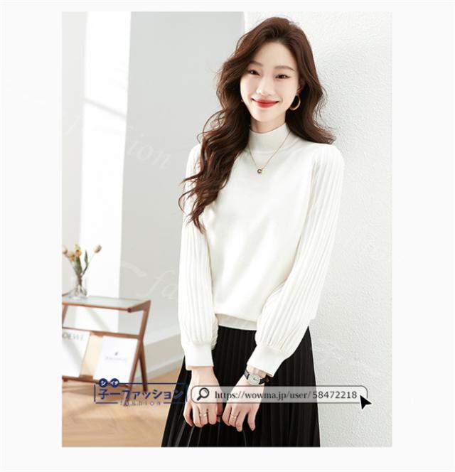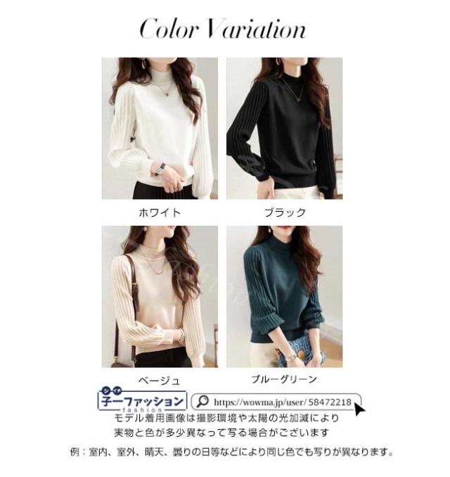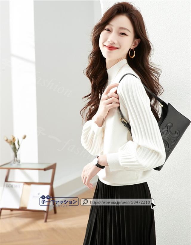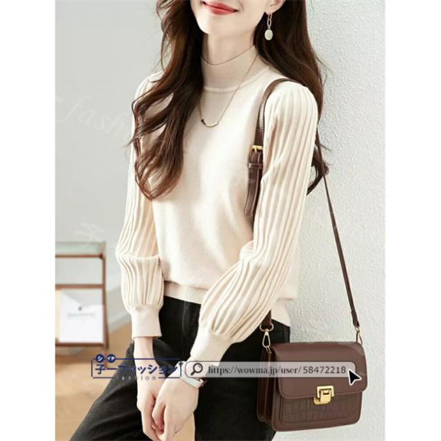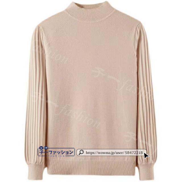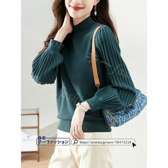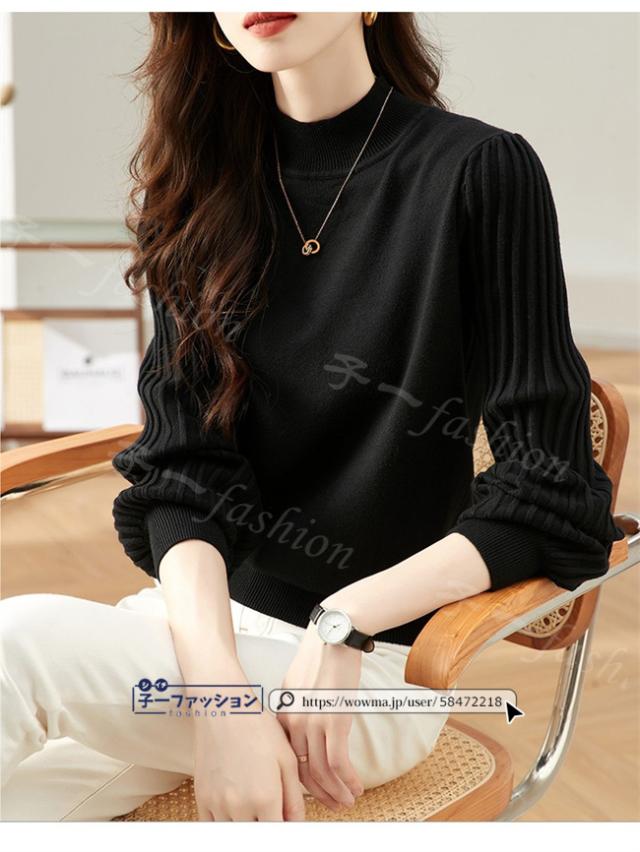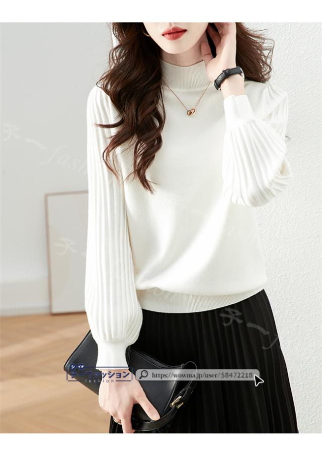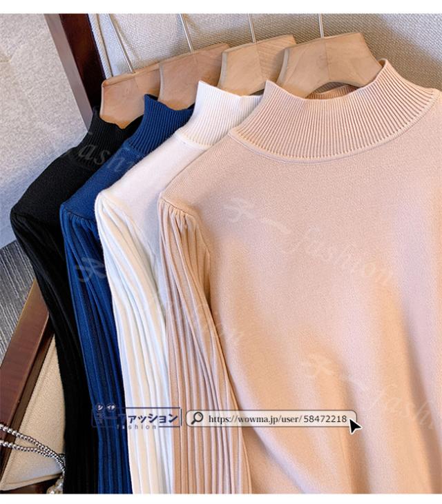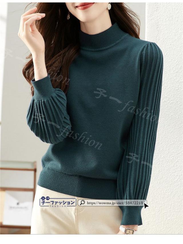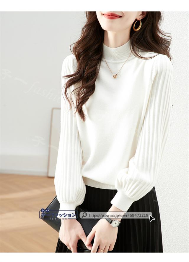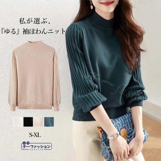 ニットトップス 冬新作 新作 レディース ハイネック 長袖 セーター ニット ニットセーター 華奢見せ 重ね着 長袖ニット ニットソー フェミニン 無地 シンプル 20代 30代 40代 秋冬 ママ 母 OL 袖コンシャス ボリュームスリーブ