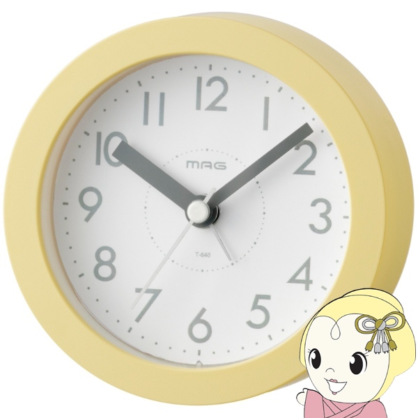 目覚まし時計 MAG マグ ノア精密 置き時計 アナログ 連続秒針 コチコチしない ルント ライトイエロー T-640LY-Z