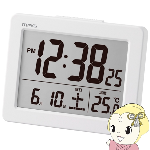 在庫あり 目覚まし時計 MAG マグ ノア精密 置き時計 デジタル 温度 カレンダー ブリム ホワイト T-779WH-Z