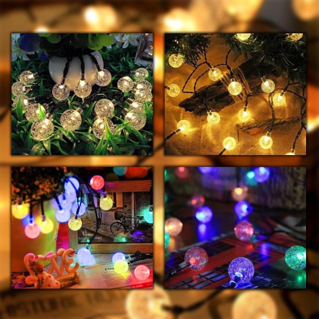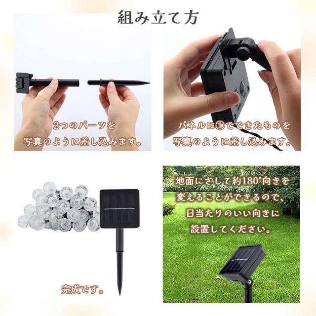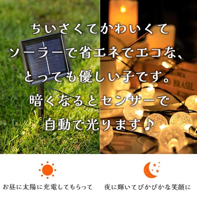 【球の大きさ約16mmのかわいいソーラーLEDイルミネーション】とってもかわいく8パターン選べて光るイルミネーション♪ソーラータイプ&センサーで自動点灯、消灯してくれる優れもの。