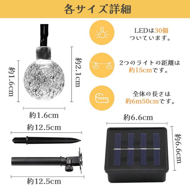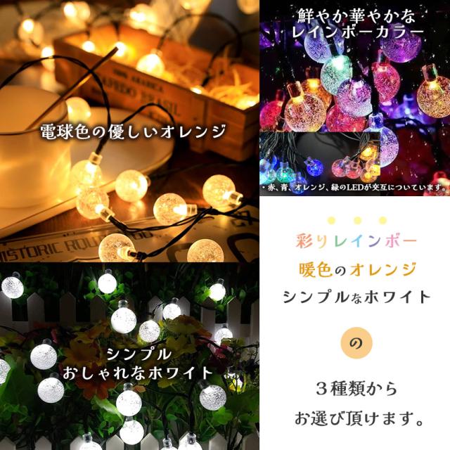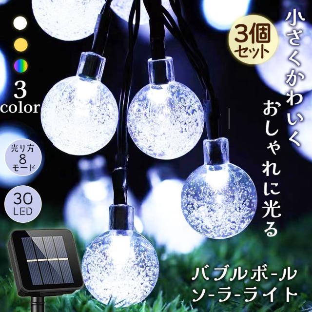 ソーラーLEDイルミネーションライト 3個セット ソーラーライト イルミネーション 3種類 バブルボール 気泡 30球 電飾 防水 屋外 屋内 ソーラー充電式 8モード切替