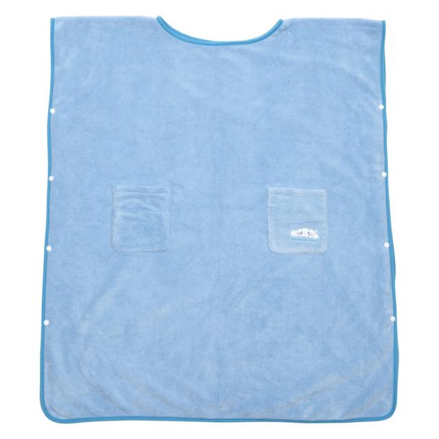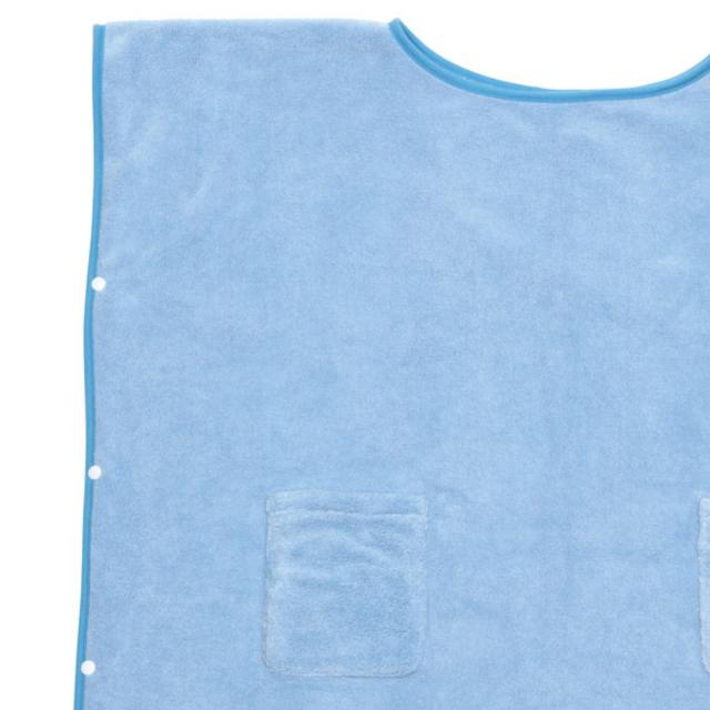 バスタオルのサイドには着脱を楽にできるスナップボタンが付いています。ポケットは左右に1つずつ付いているので、小物を入れておくのにも便利です。