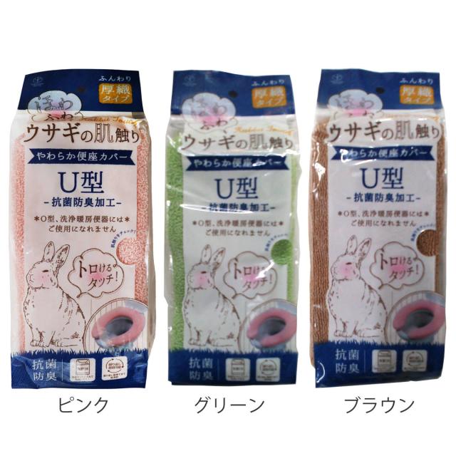 便座カバー U型 ウサギの肌触り ( トイレ 便座 カバー トイレ用品 U型用 抗菌 防臭 洗濯OK トイレタリー 洗える 無地 ピンク グリーン ブラウン 着脱簡単 )