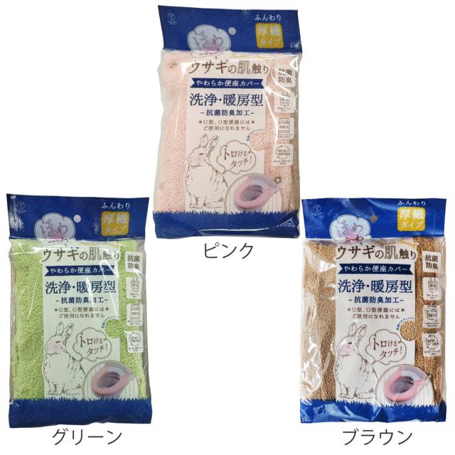 便座カバー 洗浄暖房型 ウサギの肌触り ( トイレ 便座 カバー トイレ用品 洗浄暖房型用 抗菌 防臭 洗濯OK トイレタリー 洗える 無地 ピンク グリーン ブラウン 着脱簡単 )