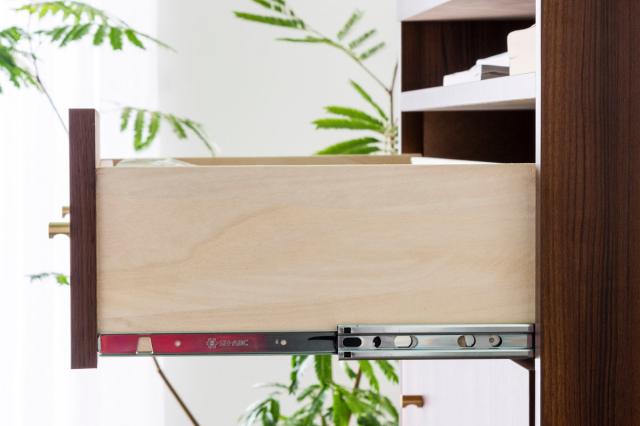 丈夫な金属製でスムーズな開閉ができるフルスライドレール仕様です。奥までしっかり引き出せるので中が見やすく奥の物まで取り出しやすいです。