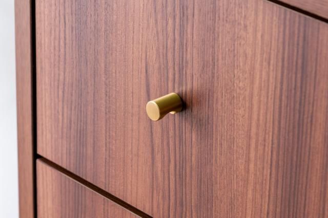 金色の真鍮の取手がアクセントになっており、優しい色味なのでお部屋に馴染みやすいです。