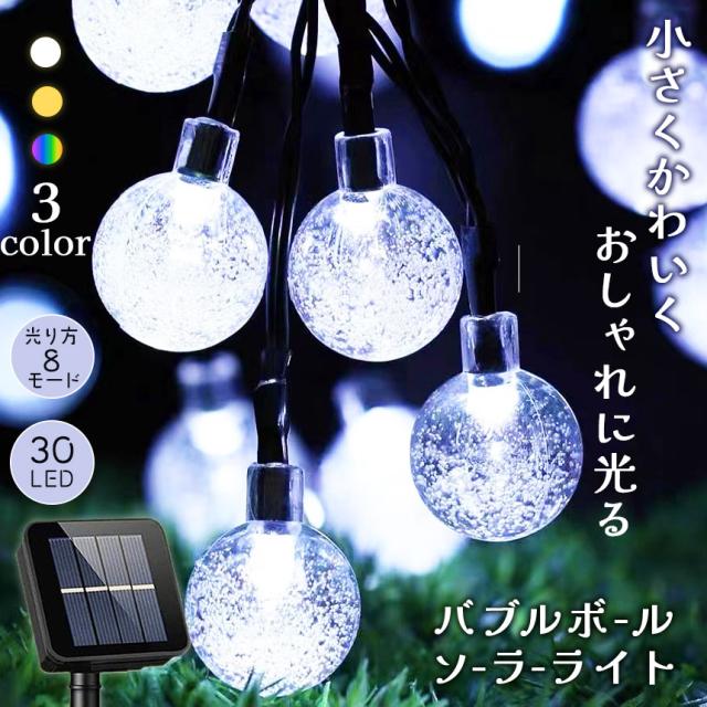 ソーラーLEDイルミネーションライト ソーラーライト イルミネーション 3種類 バブルボール 気泡 30球 電飾 防水 屋外 屋内 ソーラー充電式 8モード切替