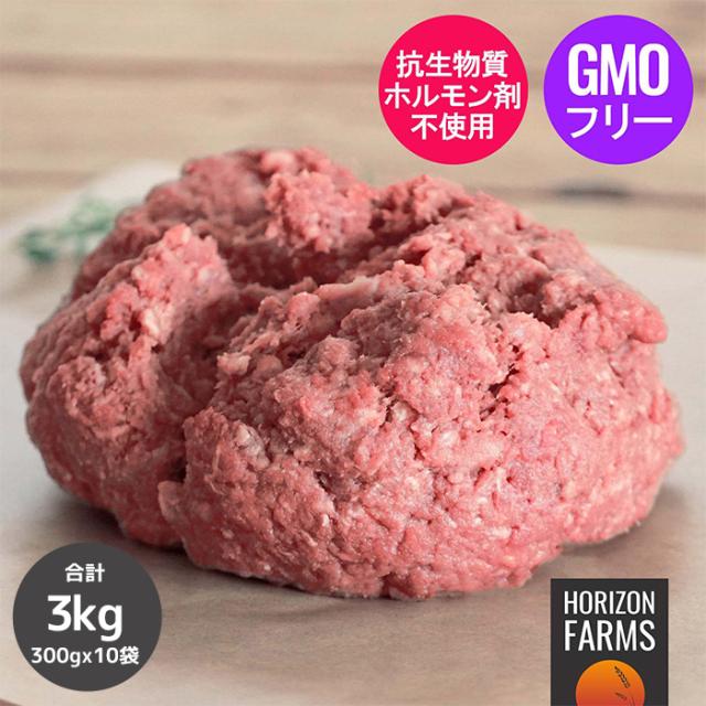 グレインフェッドビーフ 牛肉 低脂肪 牛ひき肉 放牧牛 300g x 10パックセット 合計3kg ニュージーランド産 ホルモン剤不使用