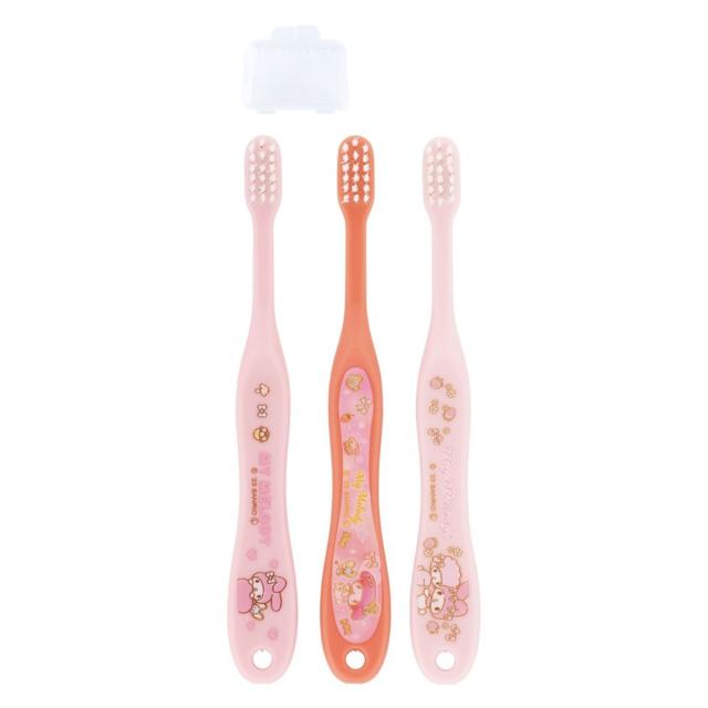 歯ブラシ 3本セット 園児用歯ブラシ キャップ付 マイメロディ ( マイメロ 子供 園児用 3〜5才 子供用歯ブラシ 幼稚園 保育園 やわらかめ 14cm ハブラシ コンパクト ヘッド やわらか毛 生えはじめ 仕上げみがき 持ちやすい )