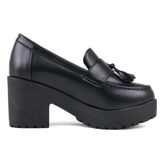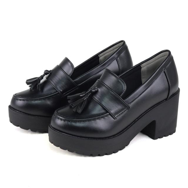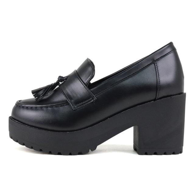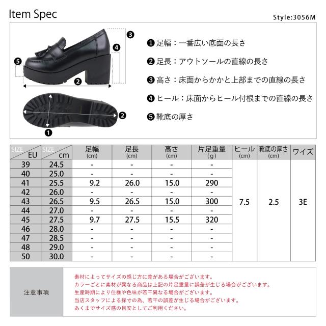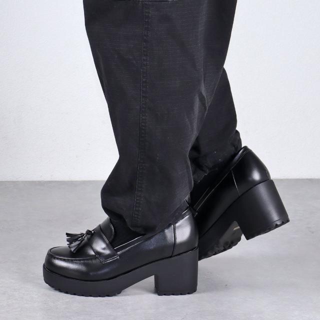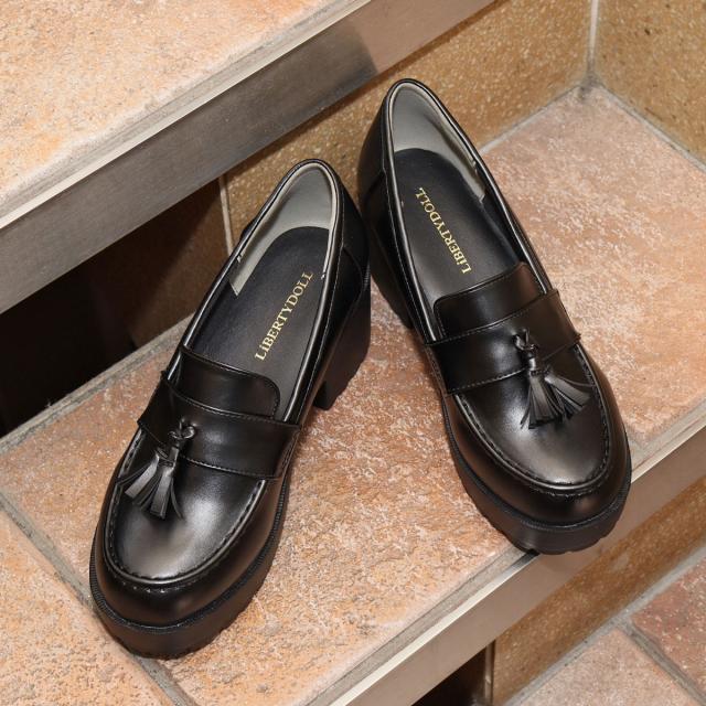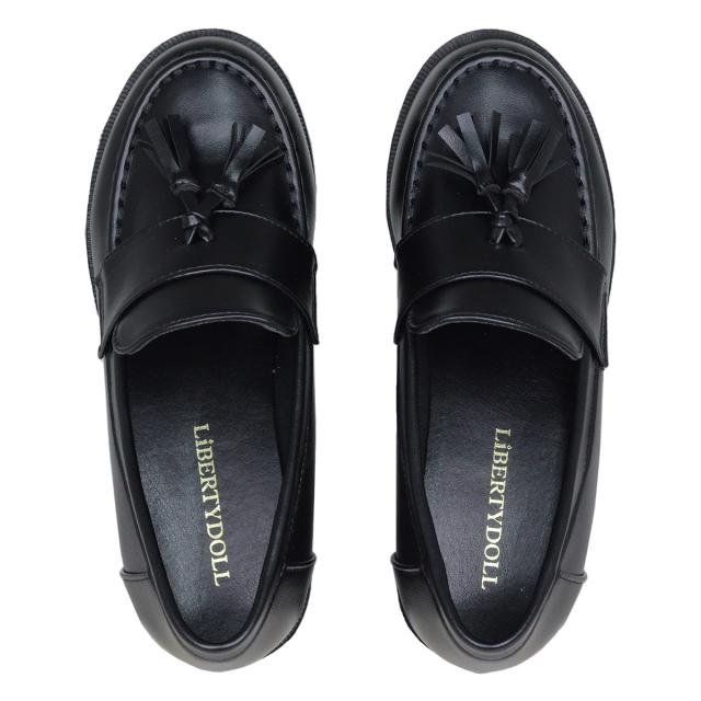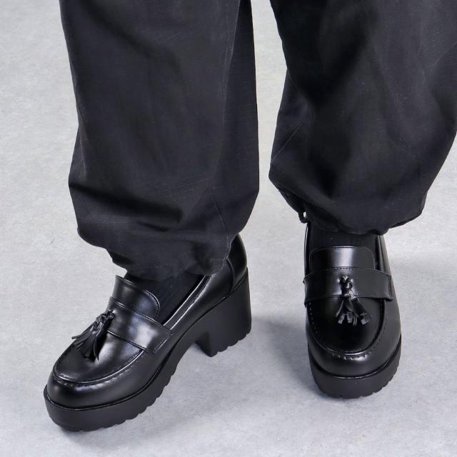 ローファー シューズ メンズ レディース ユニセックス 大きいサイズ タッセル 厚底 軽量 7.5cmヒール マニッシュ 合皮 No.3056M 25.5-27.5cm 黒 リバティードール