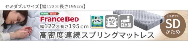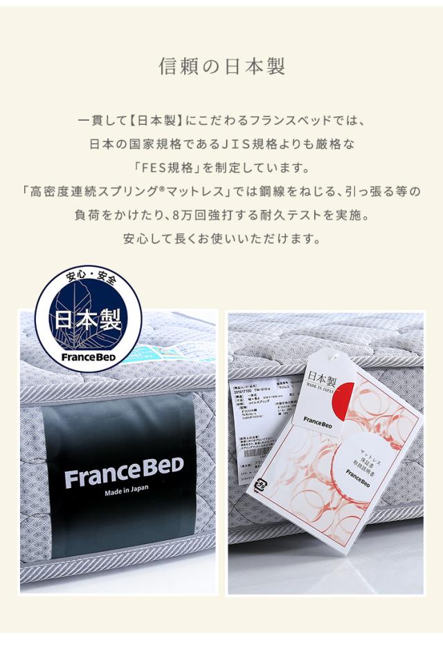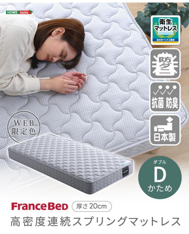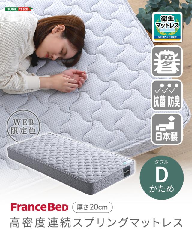 日本製 フランスベッド 高密度連続スプリングマットレス Dサイズ マットレス ベッドマットレス 敷布団 ダブルベッド 140x195 硬め 防ダニ 抗菌加工 防臭加工 通気性 耐久性 両面仕様 2年保証 キルティング おしゃれ