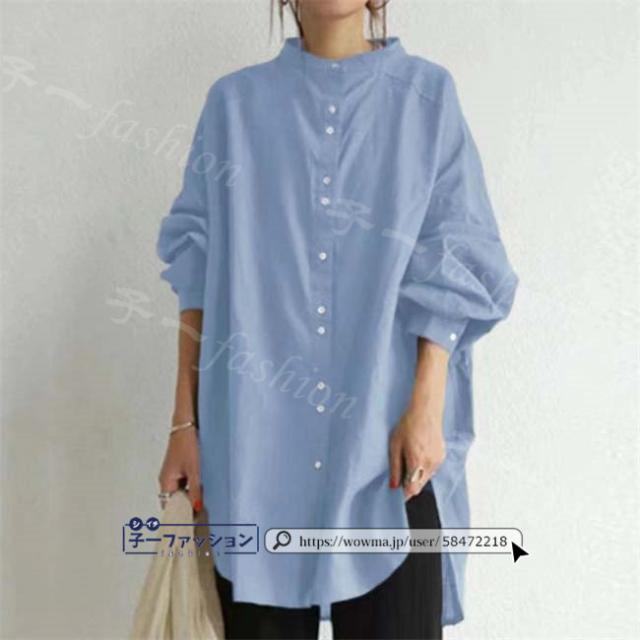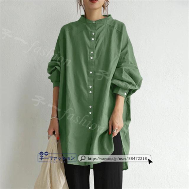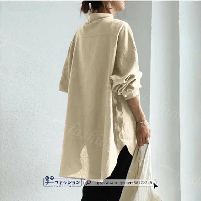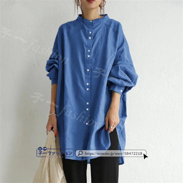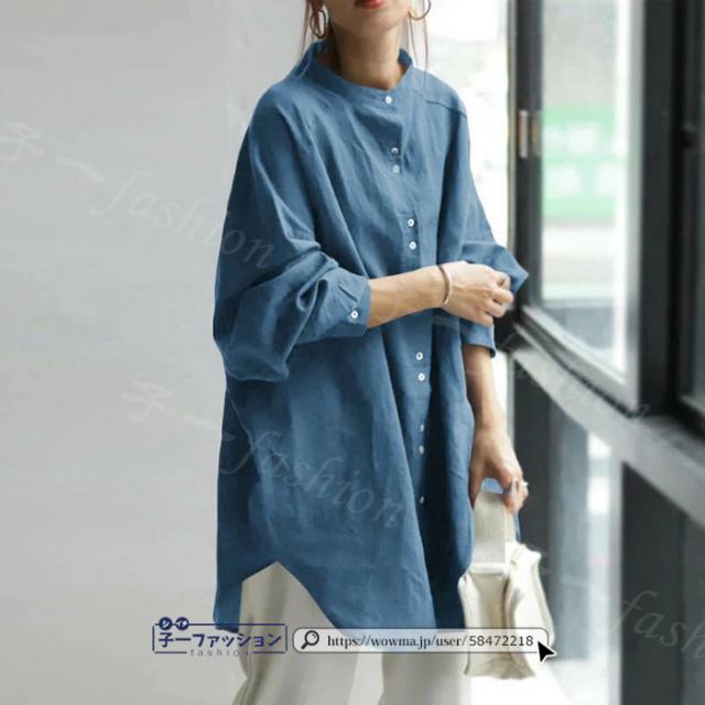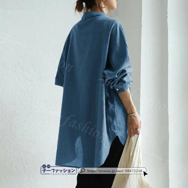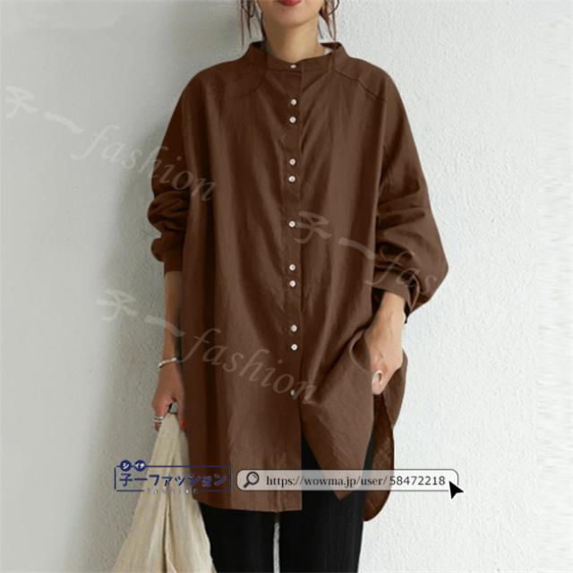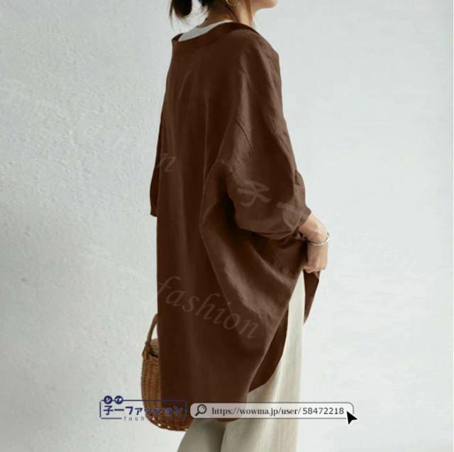 <1点2,690円!クーポン利用で>綿麻ロングシャツ 冬新作 チュニック トップス レディース 綿麻シャツ ブラウス ロングシャツ tシャツ ロング 長袖 ボタン付き 春 無地 大きいサイズ ドルマン袖 ゆったり 着痩せ 体型カバー シャツブラウス 敬老の日 秋冬